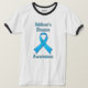 Uma t-shirt enfeitada com uma fita azul clara de sensibilização para a saúde para ajudar a espalhar a consciência desta doença endócrina chamada Doença de Addison ou Insuficiência Adrenal.