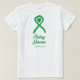 A fita verde é utilizada tanto para sensibilizar para a doença renal como para a sensibilização para o transplante de órgãos ou para a dádiva de tecidos. Existem muitos tipos de doença renal, incluindo doença renal crônica (IRC), doença renal diabética, nefropatia IgA, doença renal policística (IRP), quistos renais simples, infecção renal (pielonefrite) e cálculos renais. Personalize esta roupa de t-shirt da fita de sensibilização com uma mensagem de sensibilização pessoal. Veja mais da nossa arte em AwarenessGallery.com.