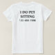 Simples camisetas de animais de estimação com as palavras que eu faço de animais de estimação sentados em letras negrito e número de contato que se destaca, de modo que é fácil lembrar com o design impresso na frente e atrás. Projetado como uma camisa de trabalho para alguém que cuida de animais de estimação que podem ser vestidos por você, seu funcionarios ou sua família e amigos para levar seu nome lá em um orçamento.