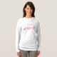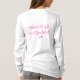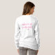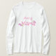 Design frente apresenta as palavras "Ser mãe" em letras brilhantes, cor-de-rosa na frente, cercadas pela imagem das flores. A leitura inversa diz: "Faz tudo valer a pena!" na mesma letra rosa. A maioria do texto é personalizável. Disponível em várias cores.