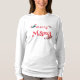 Design frente apresenta as palavras "Being Mama" em letras claras e vermelhas na frente, cercadas pelas imagens de uma boneca e blocos. A leitura inversa diz: "Faz tudo valer a pena!" na mesma letra vermelha. A imagem de uma ladybug mama com uma joaninha é exibida abaixo. A maioria do texto é personalizável.