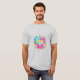 Uma design de camiseta vibrante com uma silhueta tocando violão sob uma noite estrelada, evocando paz e melodias dolorosas. Perfeito para amantes de música.
