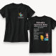Veja profissional e acessível nesta ousada t-shirt do serviço de limpeza a preto, com um personagem moderno alegre e a sua lista de serviços de cheio. Perfeito para os limpadores de casas que querem representar sua marca com confiança durante cada visita de trabalho ou cliente.