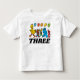Esta camiseta alegre de criança mostra Elmo, Big Bird e Cookie Monster da Rua Sesame segurando balões coloridos com a palavra "Três" exibida de forma destacada. Perfeito para celebrar o aniversário de 3 anos de uma criança, este vibrante e brincalhão design adiciona charme a uma celebração temerária da Rua Sésamo. Personalizável para um toque pessoal, é um guardião do tesouro.