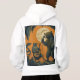 Uma ilustração branca de um urso cantando em um microfone enquanto um guitarra. Um cobra com asas de morcegos observa ao fundo, e um pequeno rato espreita atrás de uma rocha. A cena é colocada em uma caverna iluminada com um fundo laranja vibrante.