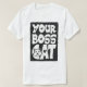 Um design preto-e-branco, preto-e-na moda, com a frase "O seu gato chefe", numa letra lúdica, desenhada à mão, com sotaques cardíacos e uma ilustração de gato fofo. Perfeito para amantes de gatos que conhecem seus felinos governa a casa!