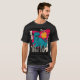design de camiseta sexy Rexy! Este gráfico brincalhão apresenta uma ilustração vibrante e colorida de um dinossauro gigante, parado sobre uma linha do horizonte segurando um balão em forma de coração em sua boca. O dinossauro é descrito em detalhes refinados...você pode contar as escamas e formar todos os músculos. Sua pose transmite curiosidade e diversão enquanto explora a paisagem urbana. Dotar a cidade atrás dela são objetos caprichosos como um relógio, balão de ar quente e rosquinha - transportando o usuário para um mundo fantástico.
