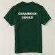 Celebre o Dia de São Patrício com estilo usando esta camiseta Shamrock Squad, apresentando um design minimalista de trevo da sorte na frente e o texto ousado "Shamrock Squad" nas costas. Perfeita para amigos, familiares, bares, desfiles, festas irlandesas e looks combinados em grupo.