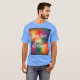 A design de camiseta apresenta um padrão de abstrato vibrante em um arco-íris de cores, reminiscente de um carnaval lúdico. A frase "Perseguir seu Prazer" aparece de forma proeminente em um roteiro ousado e manuscrito, encorajando os indivíduos a abraçar a alegria e a felicidade. A combinação de padrões coloridos e a alta tipografia cria uma composição dinâmica e inspiradora.