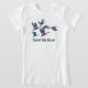 Gansos voadores em um padrão floral sobem para cima nesta camiseta feminina, com a mensagem "Siga seus sonhos." Uma afirmação positiva para as meninas de hoje!