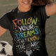 Apresentando as palavras Siga seus sonhos, depois conheça o caminho em uma tipografia ousada contra um fundo vibrante, inspirando os espectadores a perseguir seus objetivos e confiar em sua orientação interna.