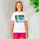 Inspire jovens sonhadores com esta camiseta jovem, com uma silhueta graciosa de um par de patins com a bandeira sueca ao fundo. Perfeito para patinar fãs, eventos culturais, ou simplesmente adicionar um toque divertido e esportivo às roupas do dia a dia. Excelente para jovens atletas e amantes do encanto nórdico.
