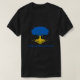 Mostre seu orgulho na herança ucraniana com esta design de camiseta escura apresentando silhueta de árvore enraizada em cores azuis e amarelas da bandeira da Ucrânia com texto personalizável "Raízes Ucranianas" em fundo preto.