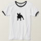 O design de Silhueta de Bulldog Francês vem com camisetas, camisetas e outros roupa, bem como botões, adesivos, bolsas e canecas.