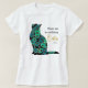 Silhueta de gato elegante com flores borrifadas em brilho com a citação, "Não há gatos comuns"