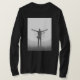 Este chaveiro circular de alumínio apresenta uma impressionante silhueta de músico em preto e branco com braços estendidos e um efeito único em estilo glitch.