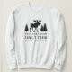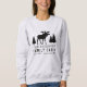 Camisola feminina com o seu nome de família e cabine personalizados, algodão ou outro texto desejado, juntamente com uma data e um local estabelecidos. Este design personalizado apresenta tipografia de estilo rústico com trabalho de arte de uma silhueta de alce e pinheiro a preto. Para ver mais designs como esta, sinta-se à vontade para visitar a minha loja aqui em "Zazzle.com/Rustic_Charm". Obrigados.