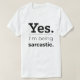 "Sim, eu estou sendo sarcástico" T-Shirt - Perfeito para o seu lado da Testemunha Deixe o mundo saber que sua língua favorita é o sarcasmo com essa camiseta ousada e direta. Apresentando a frase "Sim, estou sendo sarcástico" em um design afiado e limpo, esta camisa é ideal para qualquer um que desfrute de um humor rápido, seco e um toque de atitude. Destaques do produto: Design: o texto simples, mas atraente, garante que sua mensagem seja clara, esteja brincando com amigos ou apenas definindo o tom do dia. Material: Criada a partir de tecido macio e respirável, esta t-shirt é tão confortável quanto engraçada — perfeita para o visto do dia inteiro. Versatilidade: Disponível em vários tamanhos e cores para corresponder ao seu estilo exclusivo, esta camisa emparelha facilmente com jeans, shorts ou camadas ocasionais. Ocasiões: Excelente para excursões ocasionais, reuniões sociais ou até como início de conversa no trabalho. Quer o sarcasmo seja a sua segunda língua ou você esteja apenas no humor para uma brincadeira, esta camiseta diz tudo com um sorriso (ou sorriso). É também um presente perfeito para a pessoa inteligente e atrevida na sua vida. Adote sua inteligência e humor com a T-Shirt "Sim, estou sendo sarcástico" porque às vezes, você só precisa soletrar!