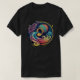 Um design de camiseta com o signo de Aquário em um contorno ousado e colorido, cercado por símbolos astrológicos giratórios. A design celebra o caráter inovador e independente dos aquários, com cores vibrantes e elementos dinâmicos que captam a energia da placa de ar.