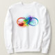 Símbolo infinito desenhado artificialmente com uma bela pena arco-íris sobre fundo branco. Tatuagem.