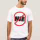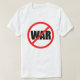 Esta trabalho de arte apresenta a palavra guerra atravessada dentro de um círculo.