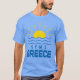 Aproveite este verão com esta camiseta azul dos homens Simi, luz do sol Grécia e ondas do mar. Este design apresenta luz solar e ondas de água com Simi em letra de estilo grego com uma grande Grécia azul.
