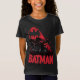 Este gráfico apresenta uma dramática representação de Batman, jogada contra um cenário vermelho e estrelado que ecoa a atmosfera perigosa de Gotham. A peça centra-se na silhueta de Batman, emergindo da escuridão com uma postura imponente, destacando seu papel como guardião da noite. O sinal do morcego soa grande no céu, chamando a Cavalaria Escura para salvar Gotham, a cidade que ele promete proteger. A chuva se estende pelo trabalho de arte, acrescentando uma camada de realismo gentil e reforçando o sentido de uma batalha interminável contra o crime. Morcegos vermelhos caem do emblema, sugerindo a ameaça sempre presente que permeia Gotham. Este trabalho de arte capta a essência da vigília duradoura de Batman, marcada por sacrifício e incansável coragem.