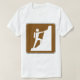 Símbolo de escalada de rocha, como aquele que vê ao longo da estrada ou na estrada. Silhueta branca de alpinista e rocha sobre fundo marrom.
