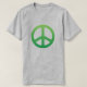 A camisa Hippie com um sinal de paz fedorento em verde macio e desbotado.