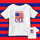 T-shirt personalizada de criança, com a bandeira dos Estados Unidos da América e as letras EUA abaixo, em vermelho, branco e azul, com estrelas e listras, que se encontram na bandeira. Personalize acrescentando um nome, para o seu bebê ou um presente criativo, acrescentando o nome da criança de outra pessoa. Excelente para reuniões familiares e comemorações do Dia da Independência.