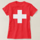 Estas camisetas gráficas e outros itens apresentam um motivo da cruz branca da bandeira suíça sobre um fundo vermelho.