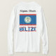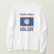 Design, na longa camiseta de manga desta mulher, mostra a bandeira Belizana com a palavra, BELIZE por baixo. Acima é um lugar para um nome. Altere a fonte e a cor do nome somente usando o recurso personalizar. Crie um presente especial e personalizado ou algo que você guarde. Excelente maneira de compartilhar seu amor e orgulho na herança, cultura e ancestralidade Belizana.