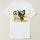 Um motociclista preto faz uma caminhada contra um pano de fundo amarelo arrojado. A frase "Sinta a LIBERDADE" destaca a pressa da aventura fora de estrada, capturando velocidade, força e a emoção crua de quebrar limites.