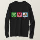Um sinal de paz, coração, e um bonito skate de gelo em uma camisa preta para aqueles que adoram patinar.