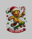 Um gengibre alegre vestindo um chapéu de Papai Noel e decoração oca é o skate com uma cana doce na mão. Cercado por estrelas coloridas, ele exalta um espírito festivo e lúdico de festas. Um cartaz no fundo diz: "NÃO POSSO ME PEGAR."