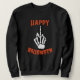 design legal e Dia de as Bruxas engraçado com uma mão esquelética dando o sinal do dedo médio e a citação Feliz Dia das Bruxas. Um jogo perfeito para a próxima festa de Halloween.