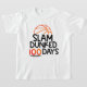 Este design moderno apresenta o texto "Slam dunked 100 dias" em tipografia negra e laranja, acentuada com uma bola de basquete. #100daysofSchool #basquetebol #slamdunked #sport #sport #game #diversão #na moda moderna #elegante #estilo #tendências #ao ar livre #garotos #boystshirts #clothingshirts #basketballtshirts #crianças #crianças #gifts #giftsforboys