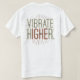 A t-shirt apresenta o texto "Vibrate Mais alto" num espectro de cores vibrante. Cada letra flui para o próximo como uma onda, criando um olhar dinâmico e energético.