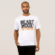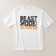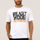 Uma t-shirt com o slogan motivador "Beast Mode: Ativated" em preto e laranja aflita a tipografia em negrito.