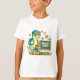 Make learning fun with this adorable Smart Dino t-shirt! Featuring a cute cartoon dinosaur wearing glasses and a cool cap, carrying a backpack and standing next to colorful books and a chalkboard, this playful design is perfect for little learners.