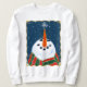 A minha pintura de um boneco de neve com um floco de neve no nariz da cenoura faz desta camisola confortável uma obra de arte de Natal para vestir!