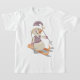Um boneco de neve esquiando com esquis, polos e um chapéu. Esta design parece realmente eficaz nesta camiseta
