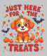 Celebrar o Halloween com este charmoso design com um adorável cachorrinho vestido de abóbora, cercado por doces e decorações de Halloween. A frase "Só aqui para os Tratamentos" torna-a ideal para quem ama o Halloween, cães, ou ambos! Quer você seja um truque ou um trico ou apenas gostando da estação assustadora, esta design bonitinha e divertida é perfeita para mostrar seu amor pelo Halloween e seu amigo peludo.