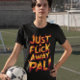 Um poster digital com a frase Apenas um Pal! em letras arrojadas, estilizadas e nojentas. As palavras são escritas em um esquema de cor feroz, laranja e vermelha, com chamas saindo das bordas das letras. A frase é colocada sobre um fundo simples e claro.