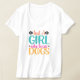 Um design gráfico colorido. As palavras "Apenas uma garota que ama CÃES" são exibidas com várias cores. "Apenas A" está numa cor laranja escura, ligeiramente acastanhada, com impressões de pata no início e no final. "GIRL" é de cor lacre ou turquesa. "Quem ama" é cor rosa-quente ou magenta.