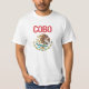 Um t-shirt que caracteriza uma águia mexicana afligida que caracteriza o sobrenome Cobo.