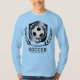 A crisp black-and-white team-oriented soccer design with bold contrast and simple lines conveys unity and collective pride. The graphic’s clean aesthetic works well with personalization, allowing team names, numbers, or slogans to be added for a meaningful touch. Applied on a cozy hoodie, this design celebrates squad identity and makes a great gift for team milestones, season achievements, coach appreciation, birthday celebrations for players, or group back-to-school gear that highlights soccer camaraderie.