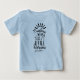 Camiseta "Sunshine Mixed with A Little Hurricane", de cor azul-branca, escrita em um roteiro de diversão negra. Você pode personalizar este design com o nome do bebê do seu ou do seu ente querido ou remover o nome clicando no botão "Personalizar este modelo". Presente perfeito para chá de fraldas e aniversário.