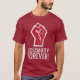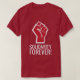 Levante sua mão e dê cinco à solidariedade. Texto do punho e da solidariedade para sempre no vermelho em um t-shirt. Personalize a camisa mudando o estilo e colora-a.