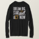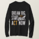Abrace seus sonhos com nossa camiseta *"Dream Big, Start Small, Act Now"*! Este design inspirador serve como um lembrete diário para tomar medidas em relação aos seus objetivos, um passo de cada vez. Disponível em várias cores e estilos, é perfeito para quem está pronto para fazer a diferença. Pegue a sua e comece sua jornada hoje!
